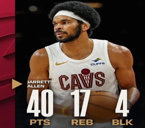 这场比赛,骑士中锋贾莱特阿伦打出了惊人表现:全场只打了29分30秒,投篮23中16,罚球12中8,拿下40分17篮板5篮板4盖帽2抢断,没有一次失误,正负值高达+25。
