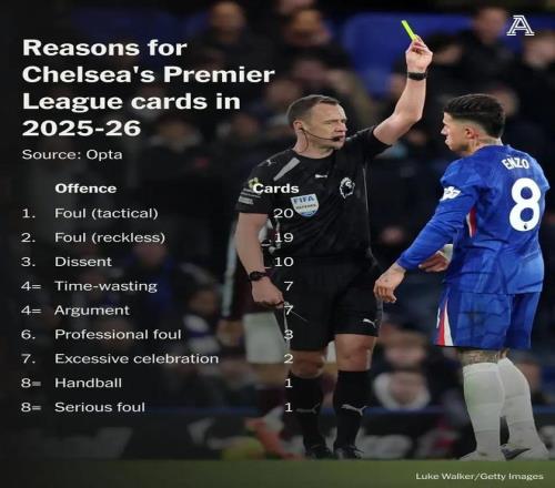 切尔西本赛季英超吃牌原因排行